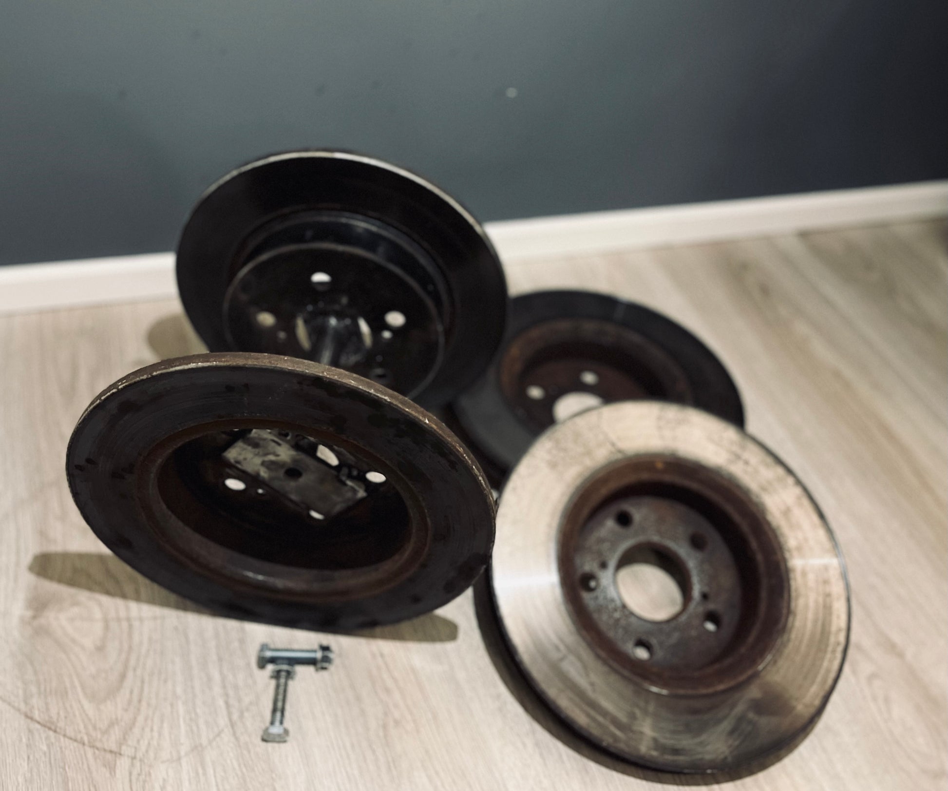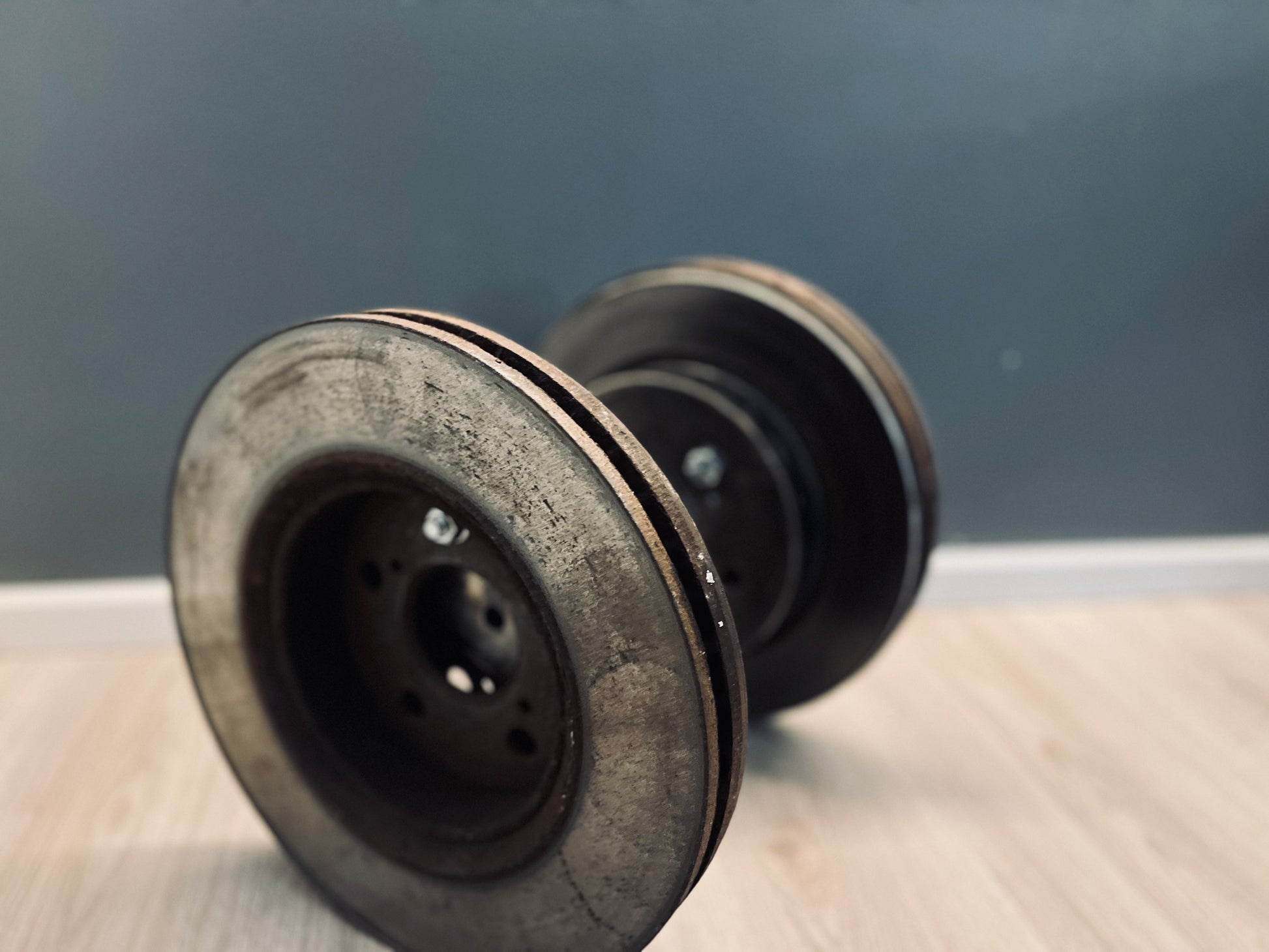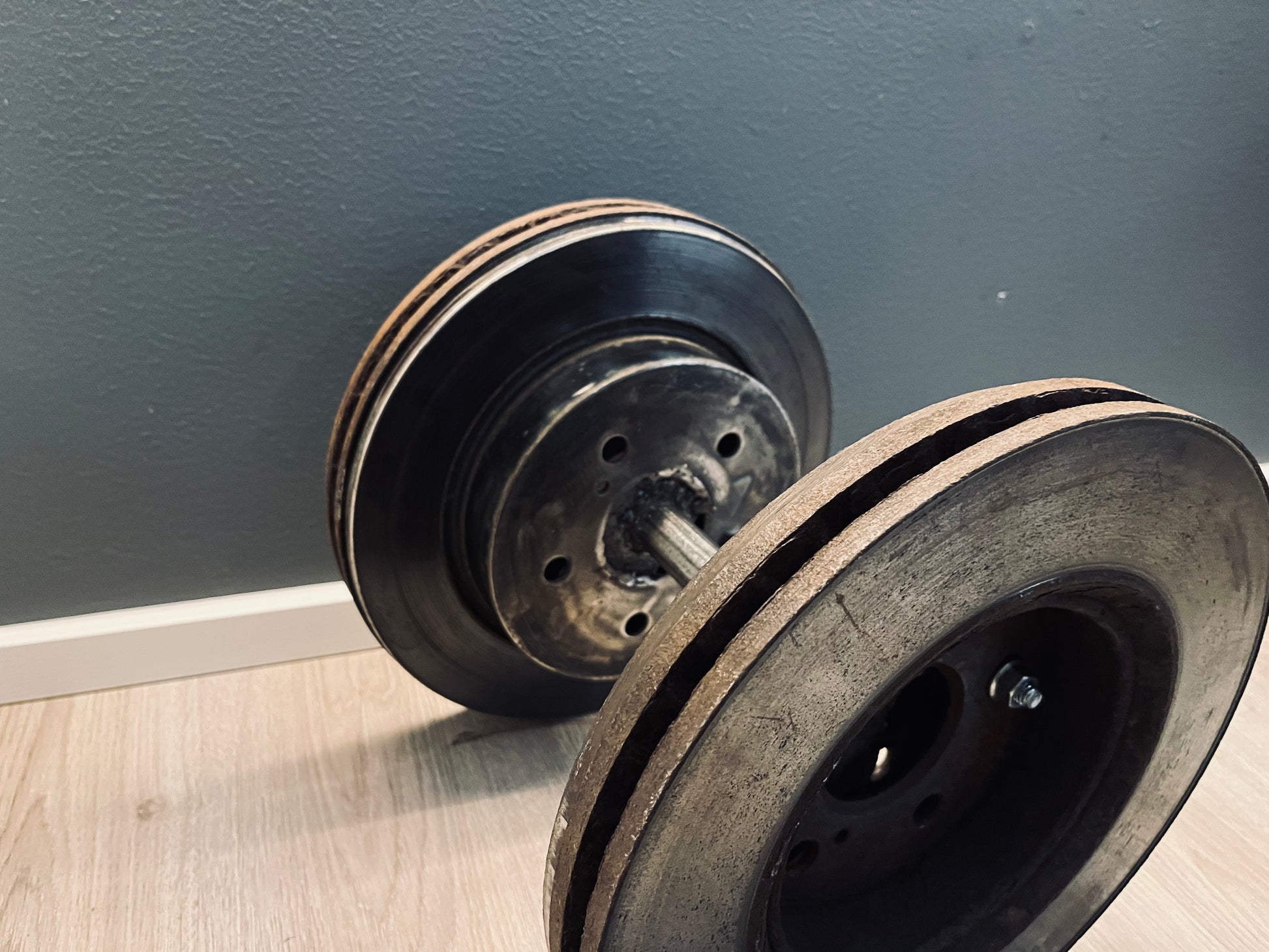 Rustika hantlar gjorda av återvunna bromsskivor